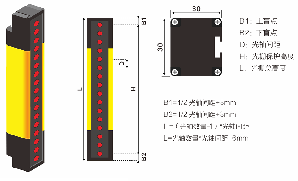 上電延時(shí)功能:上電3秒后,光柵才能使設(shè)備正常工作,可以給操作人員及設(shè)備一個(gè)緩沖時(shí)間,提高設(shè)備及人員的安全。