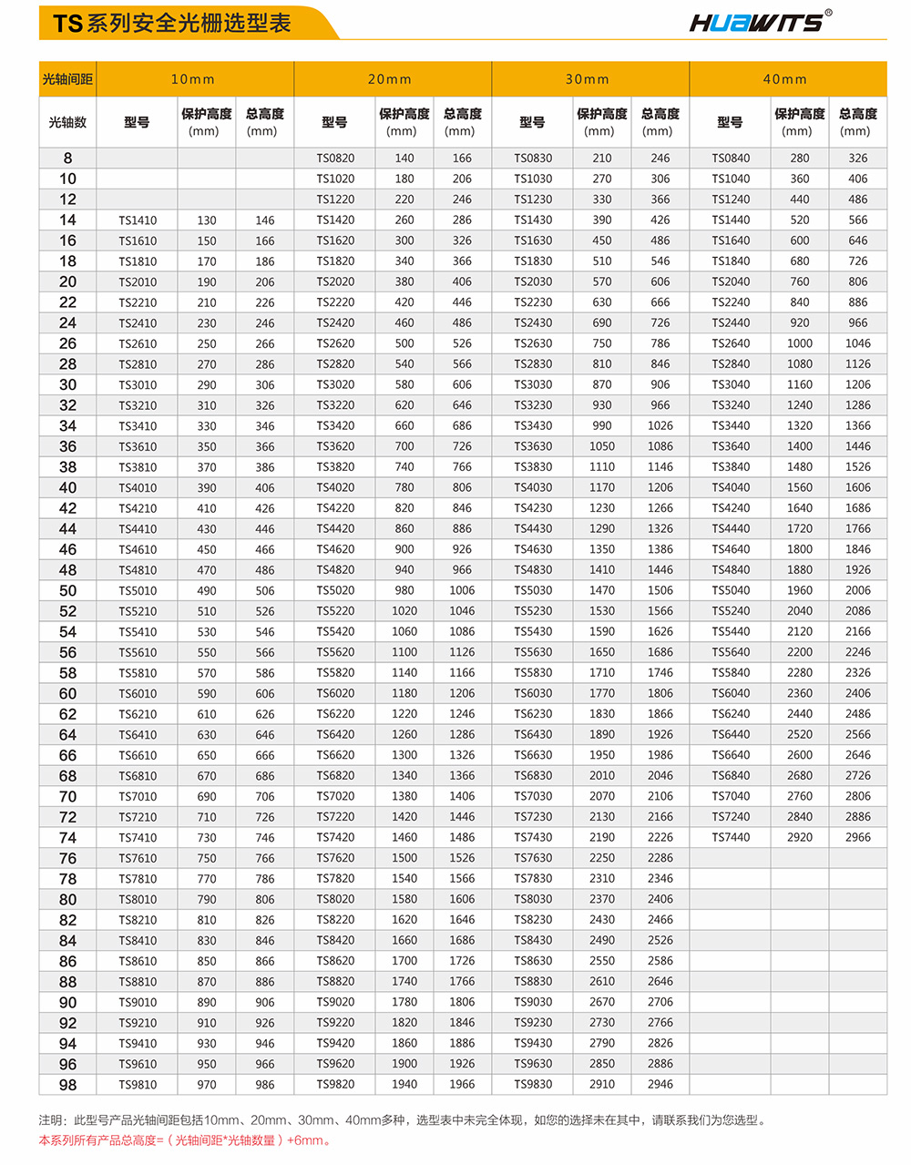常規(guī)產(chǎn)品保護(hù)高度有150 到2560mm 多種規(guī)格。如有其它需求,可特殊定制。
