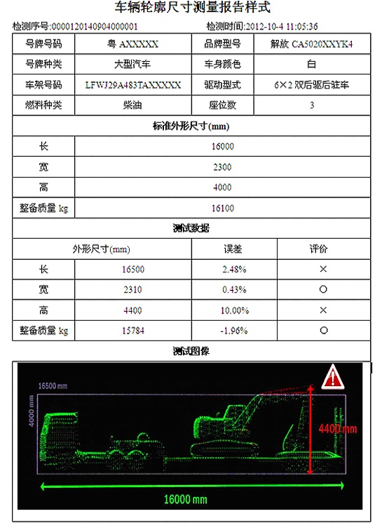 依據(jù)國家標(biāo)準(zhǔn)GB 1589-2004《道路車輛外廓尺寸、軸荷及質(zhì)量限值》、GB 7258-2012《機(jī)動(dòng)車運(yùn)行安全技術(shù)條件》、GB 21861-2014《機(jī)動(dòng)車安全技術(shù)檢驗(yàn)項(xiàng)目和方法》,為了從源頭上把好關(guān),各個(gè)公安車輛管理所、機(jī)動(dòng)車檢測站必須對超限的新注冊車輛和在用機(jī)動(dòng)車輛的外廓尺寸進(jìn)行強(qiáng)制檢測;高速公路部門在治理超載超限行政執(zhí)法中,也需要對超限的各種車輛外廓尺寸進(jìn)行檢測。目前,對車輛外廓尺寸的檢測基本上仍延用過去人工測量方式,測量效率低,成本高,測量的準(zhǔn)確性不高,對于車輛改裝重災(zāi)區(qū)的大型貨車、掛車等車輛測量更加困難。檢測過程中也不可避免會(huì)產(chǎn)生一些違規(guī)違法的行為,影響了車輛檢測的公正性和客觀性。由于人工測量的不確定性以及費(fèi)時(shí)費(fèi)力不安全,迫切需要一種測量儀器對機(jī)動(dòng)車外廓尺寸進(jìn)行自動(dòng)測量,以減少測量工作強(qiáng)度及人為因素的干擾。